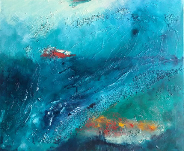 Unterseeboot mit Liegesitzen in lila Samt